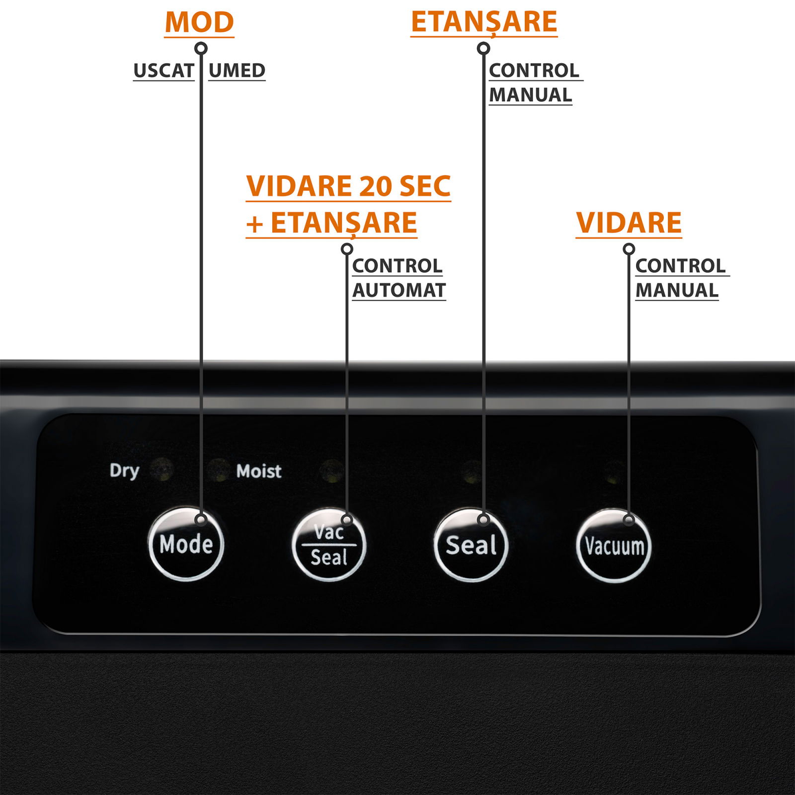 Apăs doar pe vacum/seal, se oprește singur și gata și vidatul produsului. Foarte ușor de folosit. Recomand!