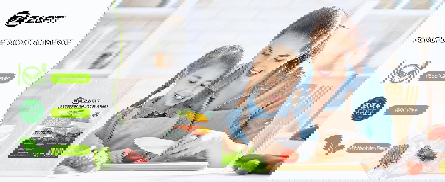 Alege pachetul ZAFIT™ cu 50 saci de vidat (25 cm x 35 cm), cu care poti sa videzi, sigilezi si resigilezi carne, legume, peste sau multe alte alimente.
