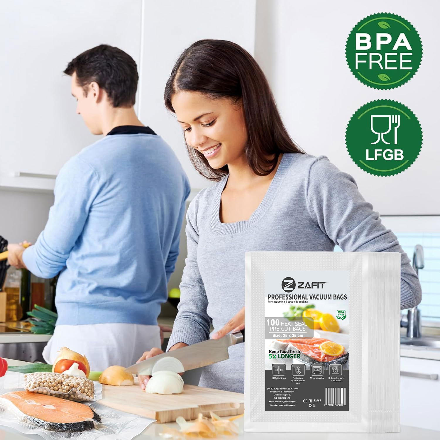 Prin utilizarea vidarii, aerul si umezeala nu patrund in alimente, iar nutrientii, gustul si prospetimea se mentin de pana la cinci ori mai mult decat metodele traditionale de depozitare. In plus, cu pungile de vidat ZAFIT™, previi arsurile din congelator.