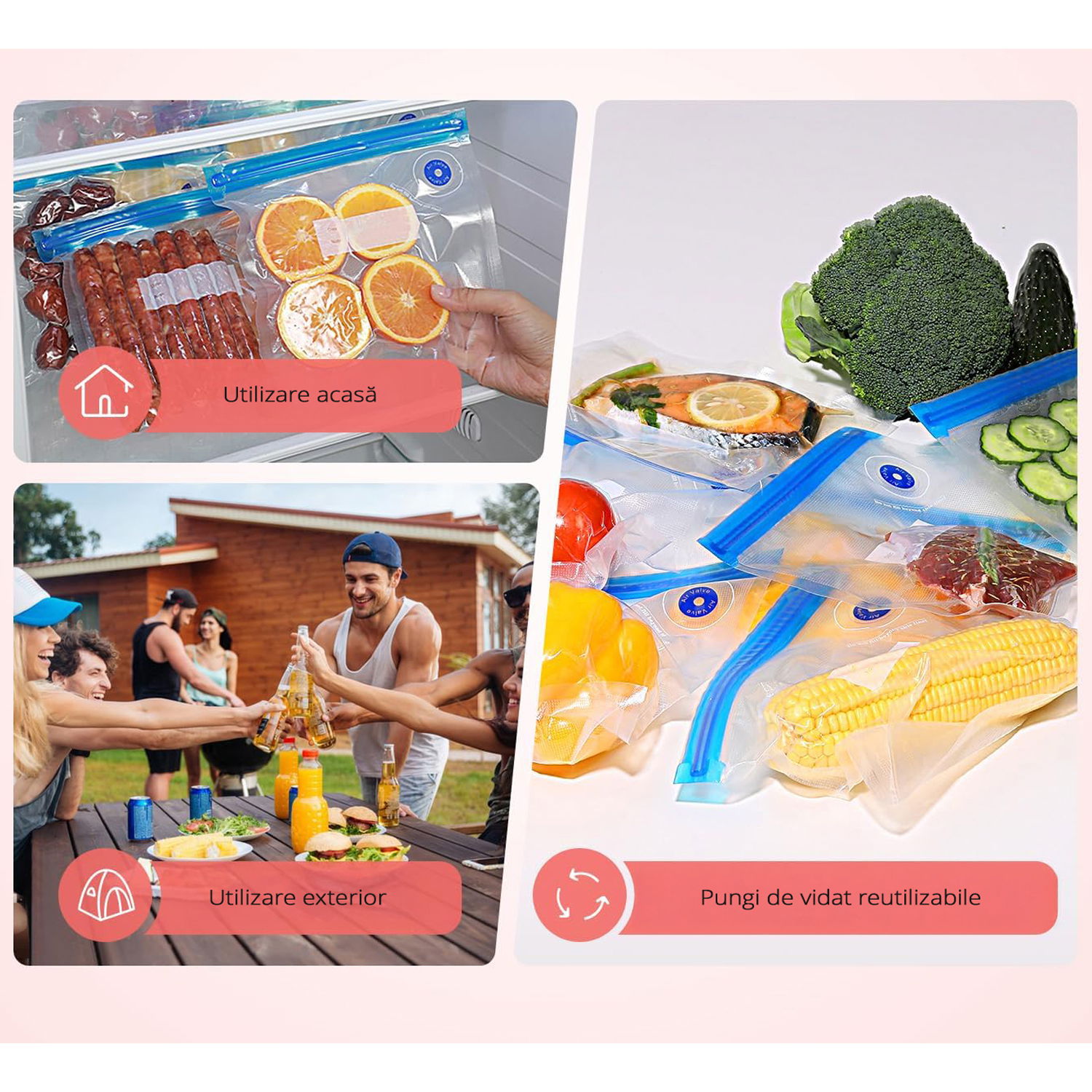 Set 10 Pungi de vidat 22 x 21 cm, Reutilizabile, cu supapa, pentru pompa de vidat sau furtun de vidat