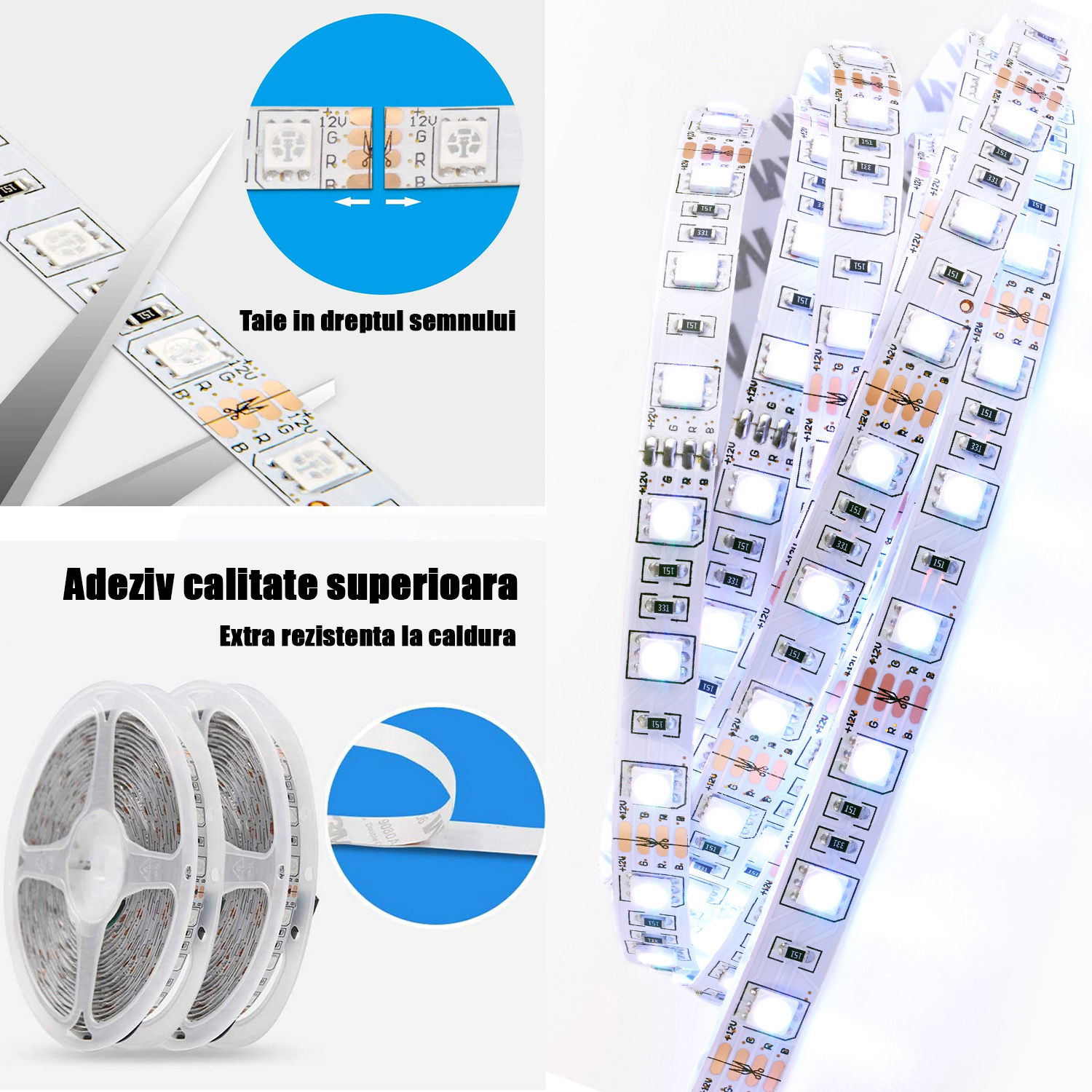 Banda LED RGB ZAFIT™ 10 metri, Exterior/Interior IP65, Wi-Fi, aplicatie telefon, telecomanda, mod muzica, timer, microfon, intensitate lumina reglabila - Copie