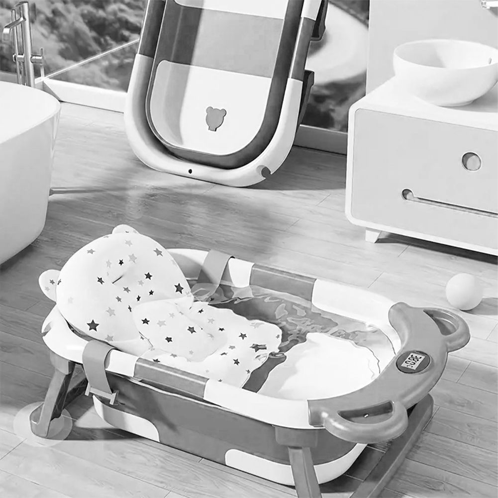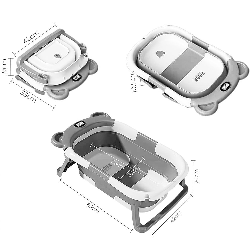 Cadita bebe cu suport FiGGA®, 0-48 luni, portabila, extra pliabila, termometru, picioare antiderapante, suport cap de dus, Gri