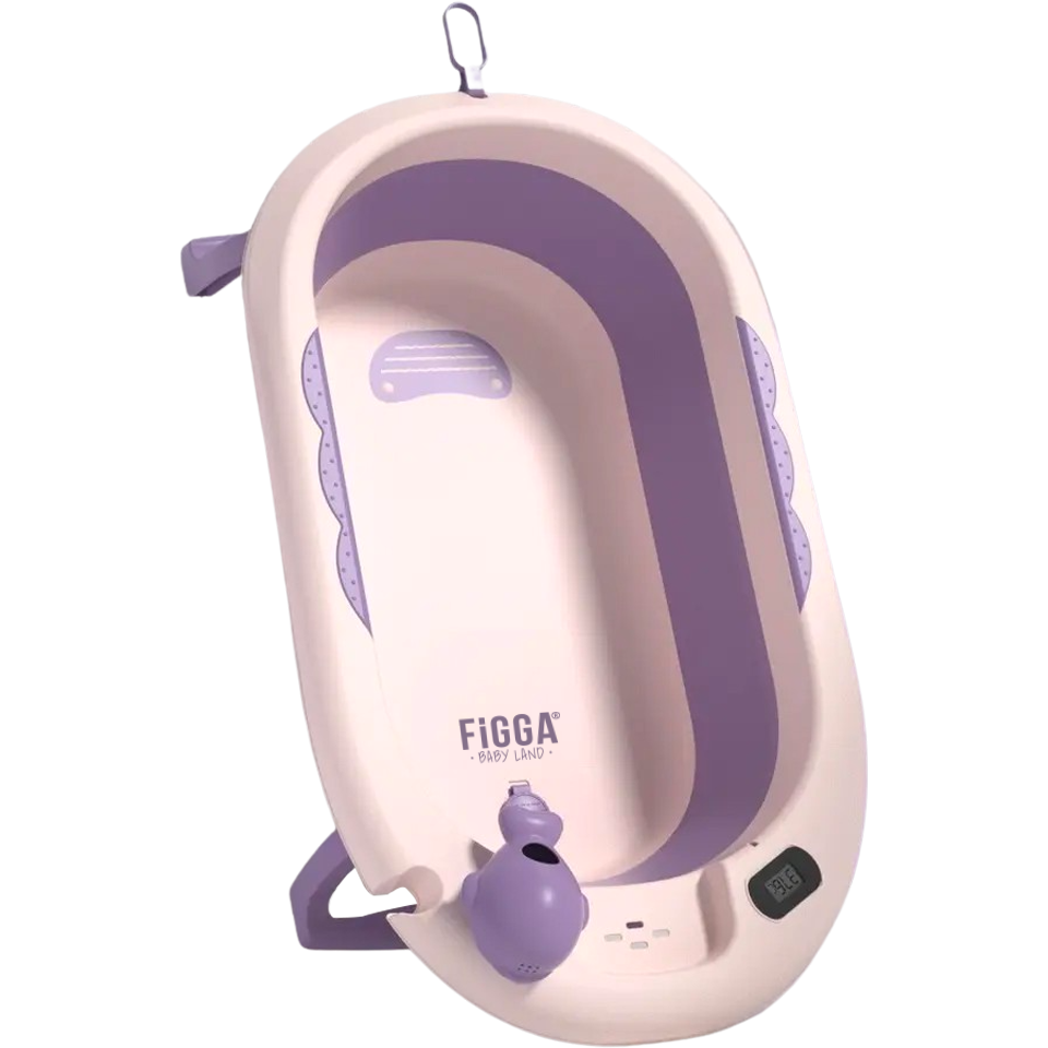 Cadita bebe FiGGA®, 0-48 luni, pliabila, termometru, picioare antiderapante, cana pentru clatire tip jucarie, suport cap de dus, suport pentru sapun, Roz