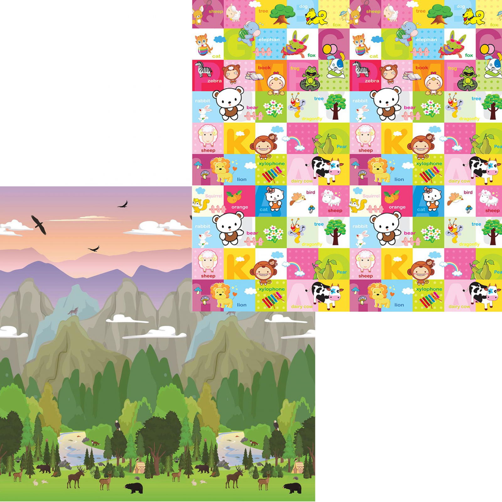 FIGGA Covor de joaca FiGGA® pentru copii 200 x 180 cm, Spuma protectie, Termoizolant, Pliabil, 2 fete, Covoras bebe interactiv si educativ pentru activitati de joaca a bebelusului, Print 04