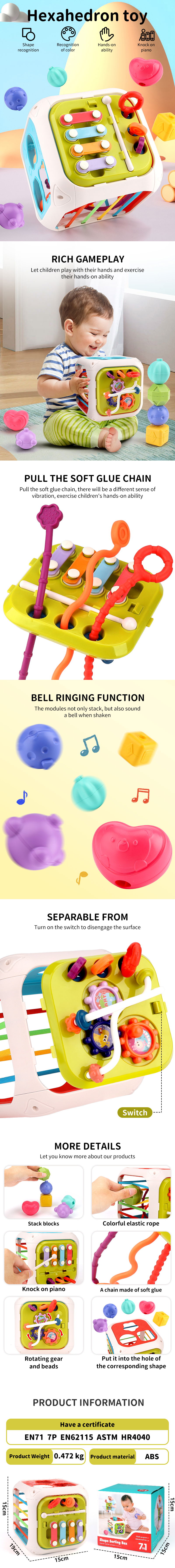 - Multifunctionalitate 7 in 1: Aceasta jucarie include 7 activitati distincte care stimuleaza dezvoltarea cognitiva si senzoriala a micutilor. Fiecare fata a cubului ofera o experienta diferita, de la puzzle-uri simple si jocuri de potrivire a formelor, la activitati interactive care dezvolta coordonarea mana-ochi.