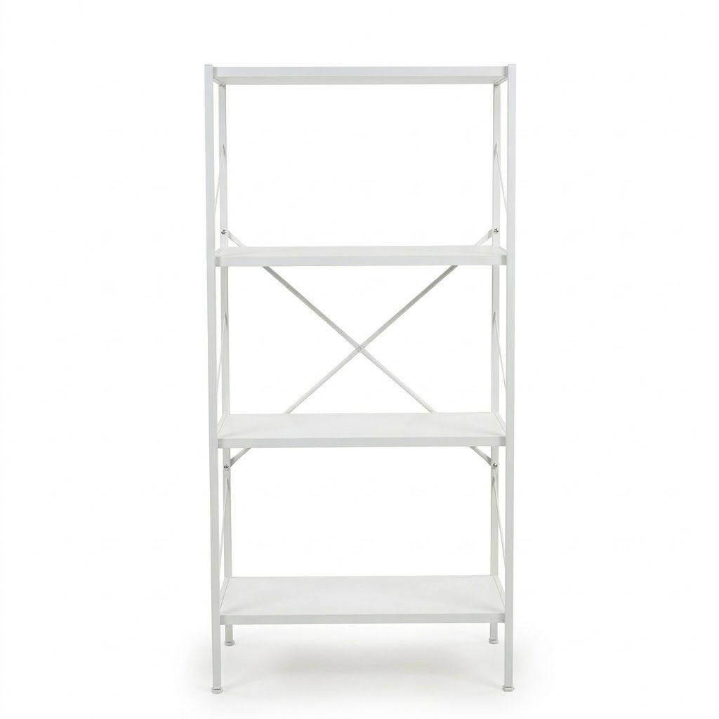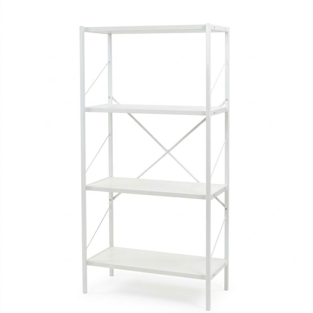 Etajera cu 4 rafturi depozitare FiGGA®, Metal + MDF, 120 cm x 55 cm x 25 cm, potrivita pentru baie, carti, pantofi, incaltaminte, papuci, jucarii, biblioteca, in camara, debara sau dressing, Alb/Alb