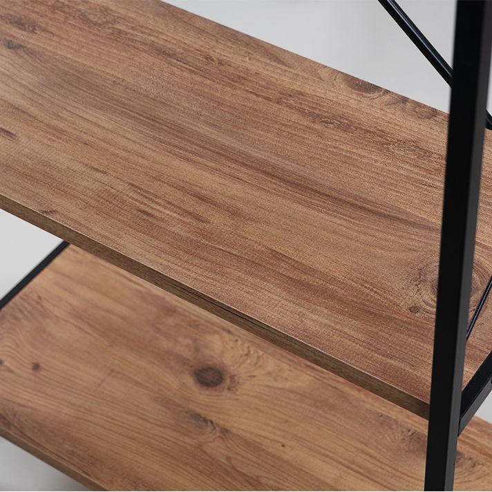 Structura stabila imbina metalul vopsit electrostatic cu rafturi din MDF, oferind un design modern care combina stilul minimalist, industrial si scandinav.