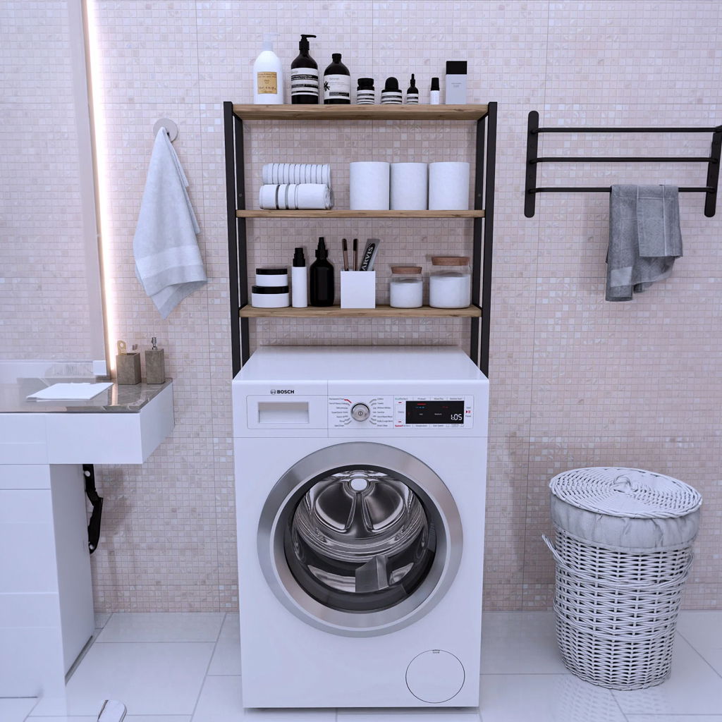 Transforma fiecare centimetru din baia ta intr-un spatiu complet functional si extrem de atragator. Daca te confrunti cu lipsa spatiului in baie sau in zona de spalatorie, aceasta etajera supraetajata este solutia definitiva. Proiectata strategic pentru a folosi spatiul "mort" de deasupra masinii de spalat sau a toaletei, acest organizator aduce un plus de confort si un aer modern, de inspiratie industriala, in locuinta ta.