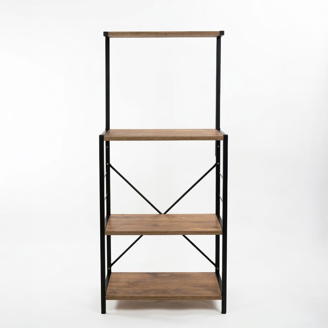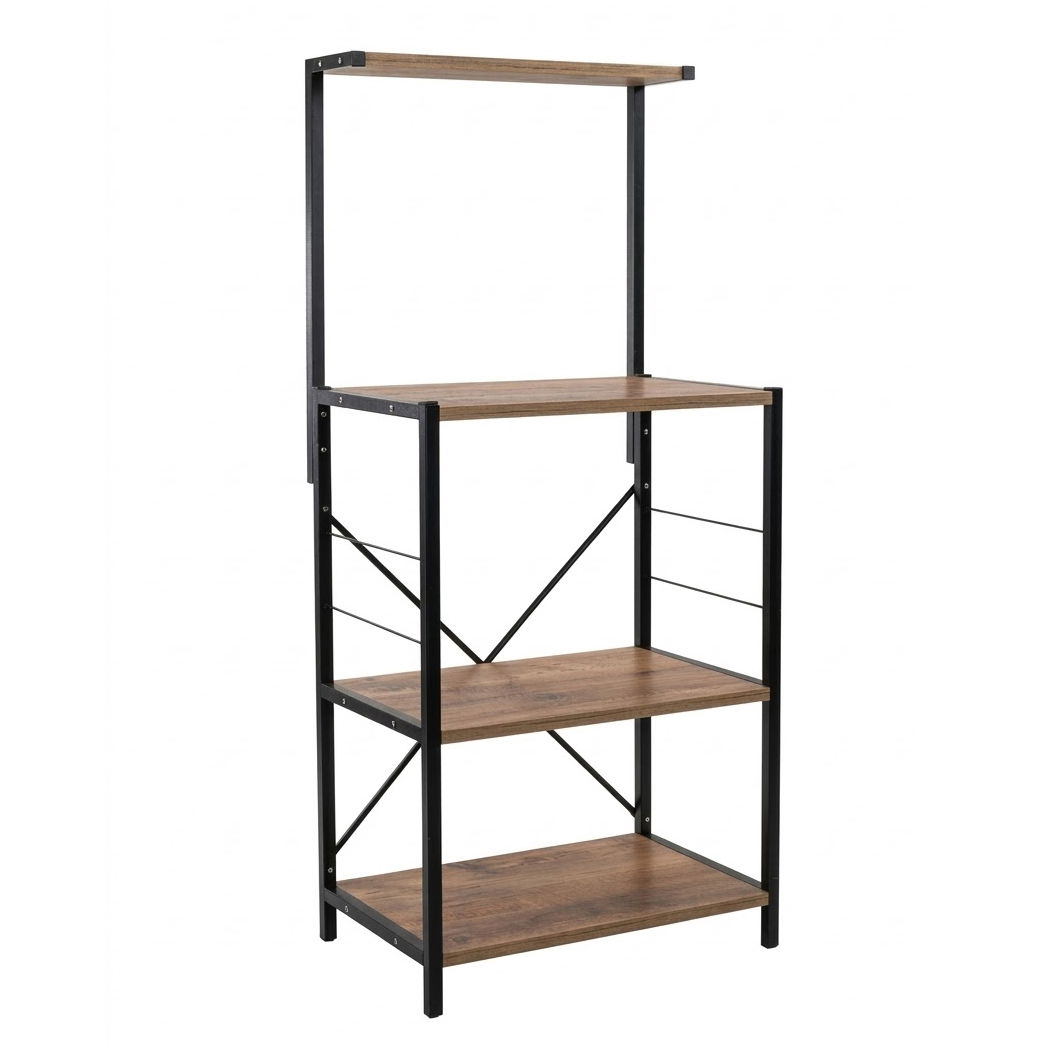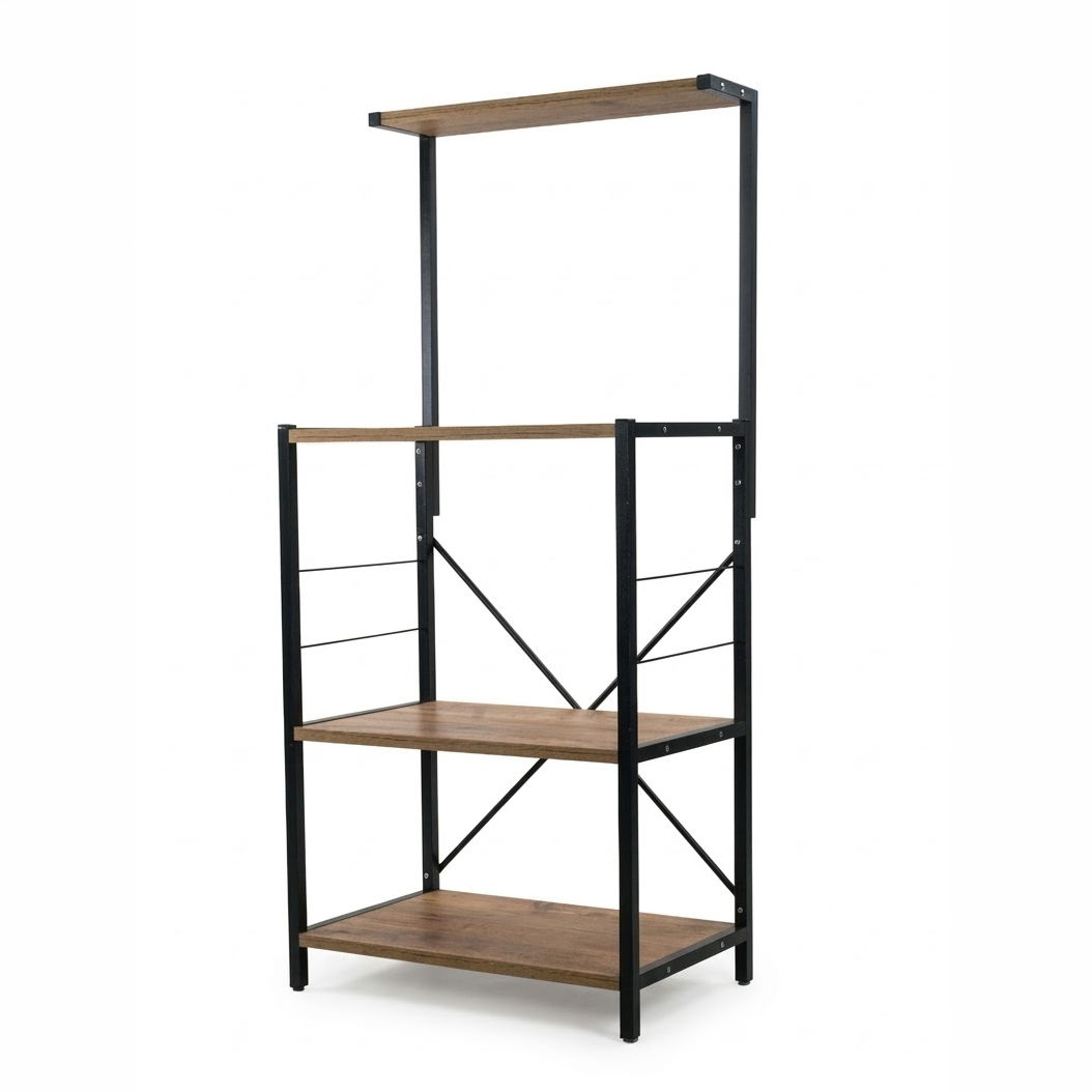 Raft de bucatarie, spatiu cuptor cu microunde, 4 rafturi, 132 cm x 60 cm x 40 cm , etajera Metal + MDF, Negru/Pin
