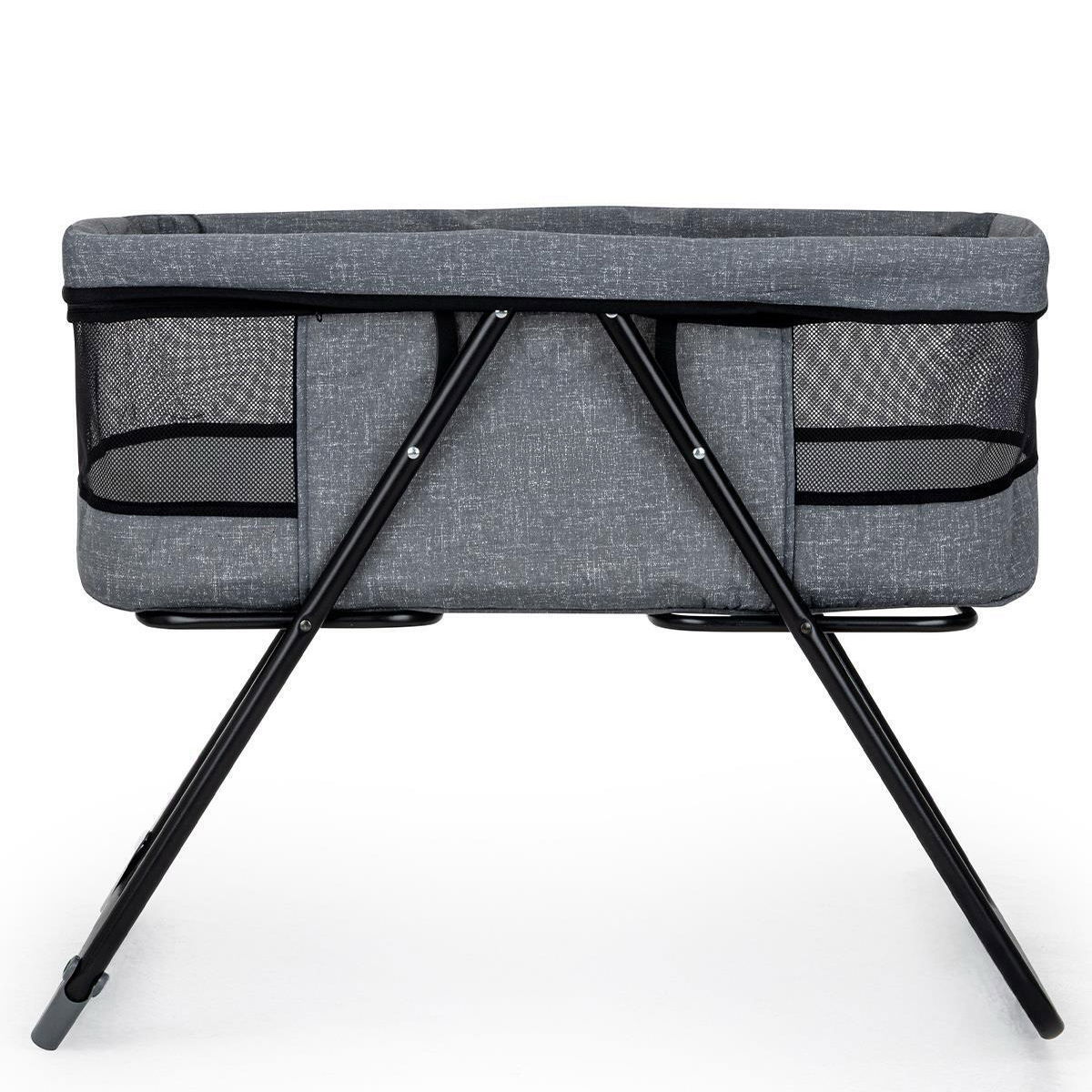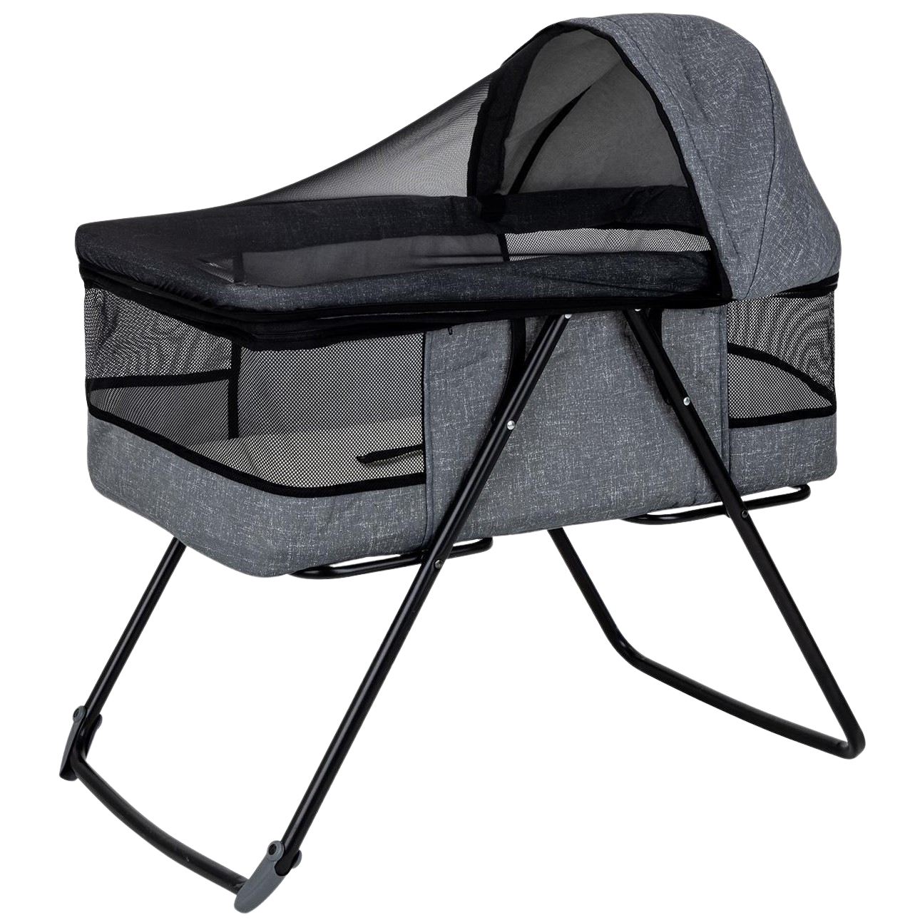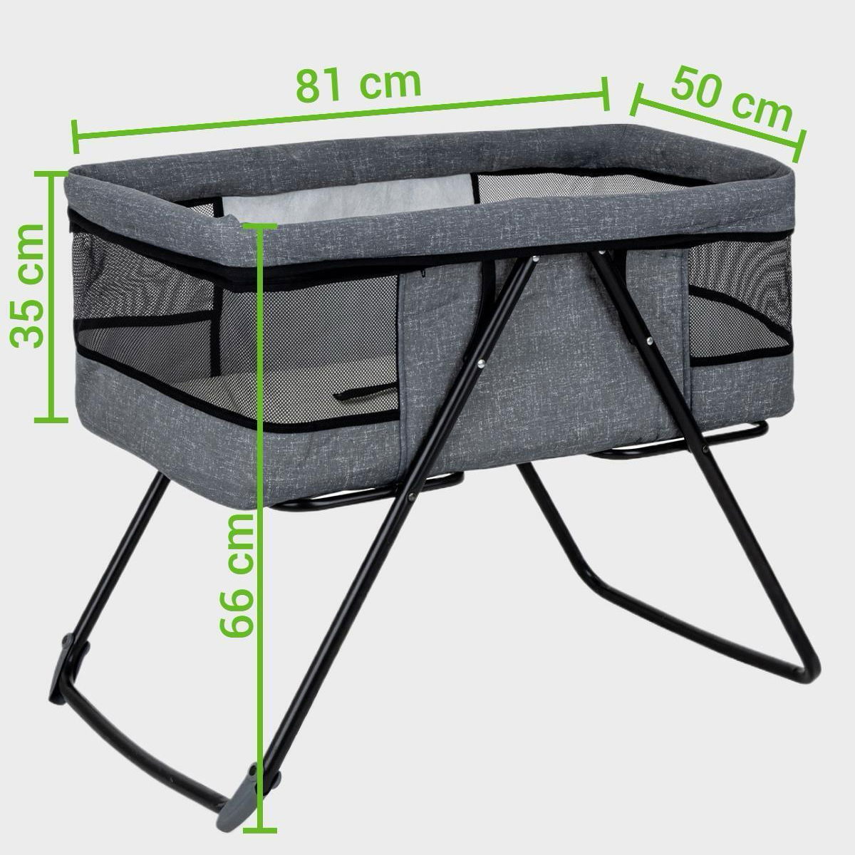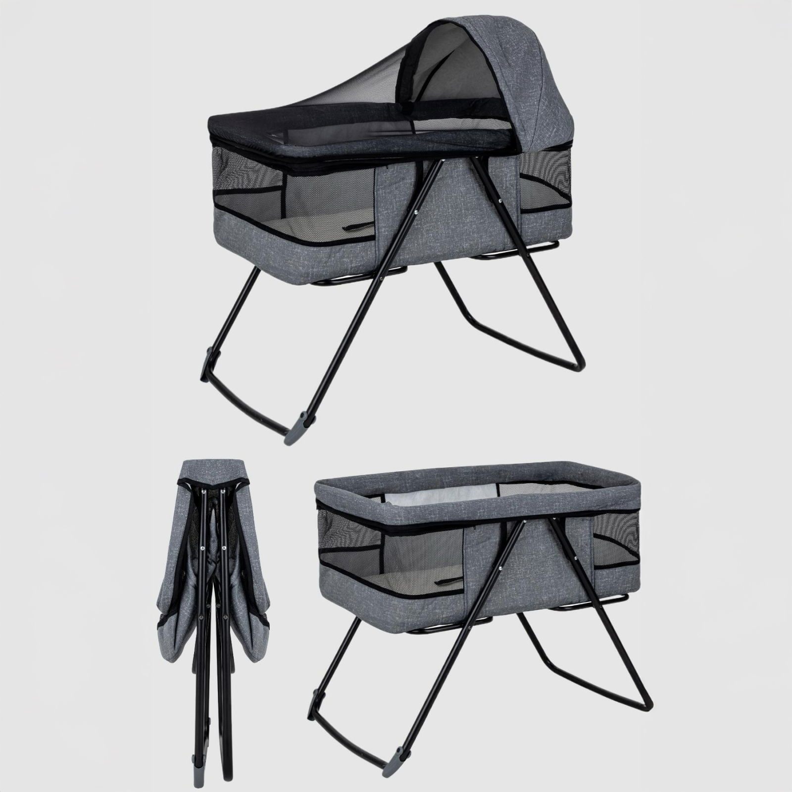 FIGGA Patut bebe pliabil FiGGA®, 0+ luni, Saltea inclusa, Cu sistem balansoar, Plasa tantari, Portabil, Gri