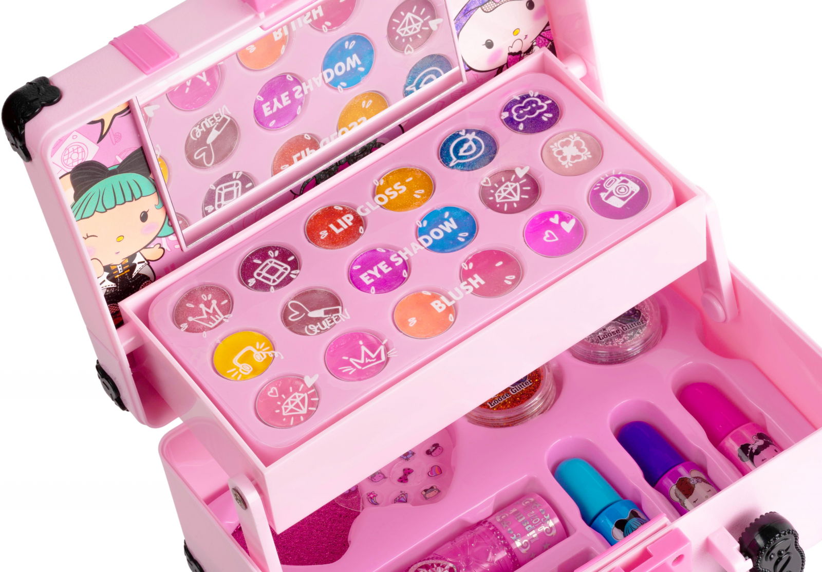 E a doua trusa cumparata de la ei. Fetita mea de 6 ani a fost ft incantata. Surpriza cea mare a fost cand a descoperit si produsele de manichiura din interiorul cutiutei. Se observa ca nu sunt toxice/daunatoare pentru ca ea e destul de senisbila si i-ar fi aparut bubite. Recomand, chiar sunt de calitate!