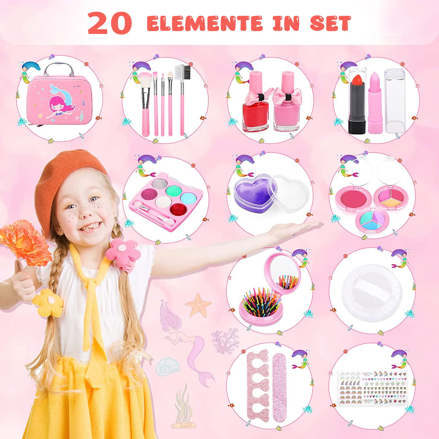 Trusa beauty FiGGA® 5 ani+, makeup copii si unghii, solubile in apa, machiaj sirena, jucarie copii fete si fetite