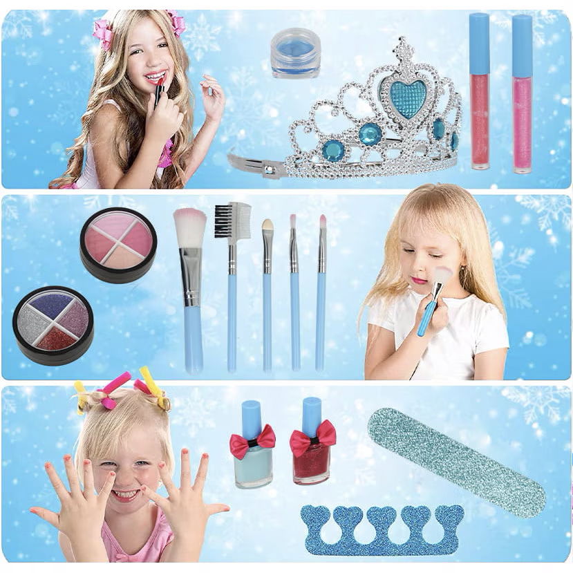 ❄ Machiaj sigur, non-toxic si lavabil - Siguranta este prioritatea principala a produselor pentru copii. Trusa noastra de machiaj este realizata din materiale de calitate, durabile, fara substante nocive. Pentru a indeparta machiajul, este suficient sa stergi excesul cu un servetel sau disc demachiant, apoi sa speli cu sapun, lotiune de curatare si apa calda. Astfel, micuta ta se poate bucura de frumusete fara griji!