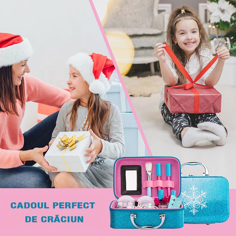❄ Cadoul perfect pentru mica ta printesa - Acest set este cadoul ideal pentru o micuta iubitoare de frumusete. Fetele adora sa exploreze machiajul acasa si sunt curioase de primul lor machiaj. Trusa este usor de folosit si contine tot ce isi doreste o fata intr-o geanta de machiaj pentru prima oara. Este un cadou minunat de Craciun sau aniversare pentru fetitele de 4-12 ani.